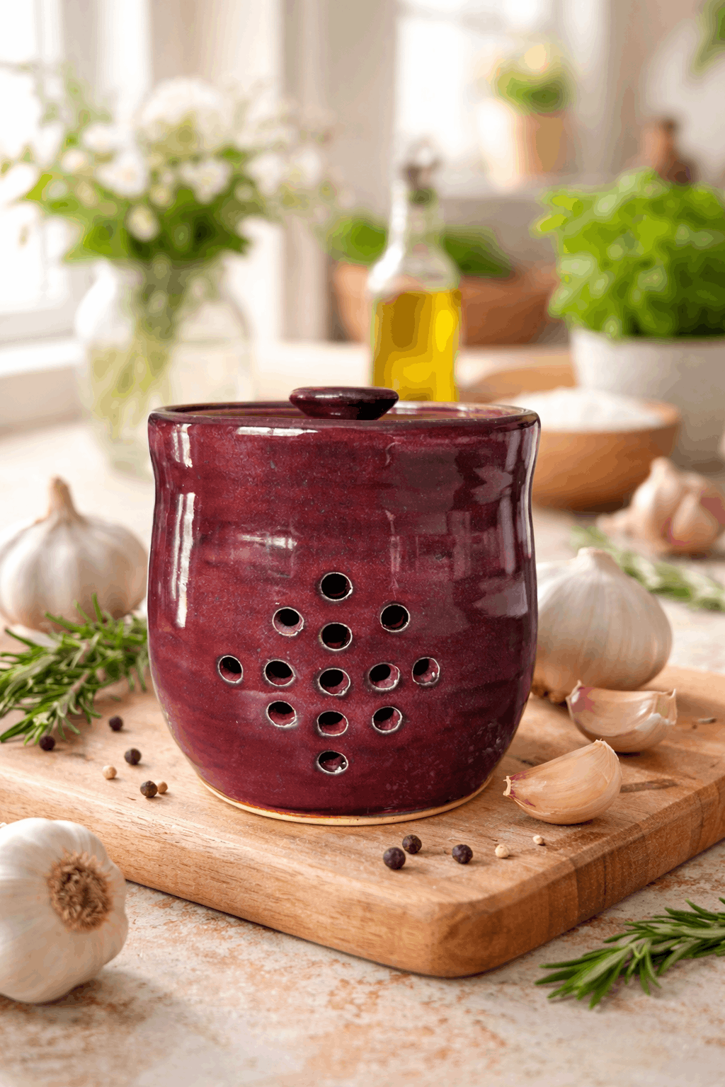 A beautiful addition to any kitchen. Perfectly vented to help keep your garlic fresh longer.