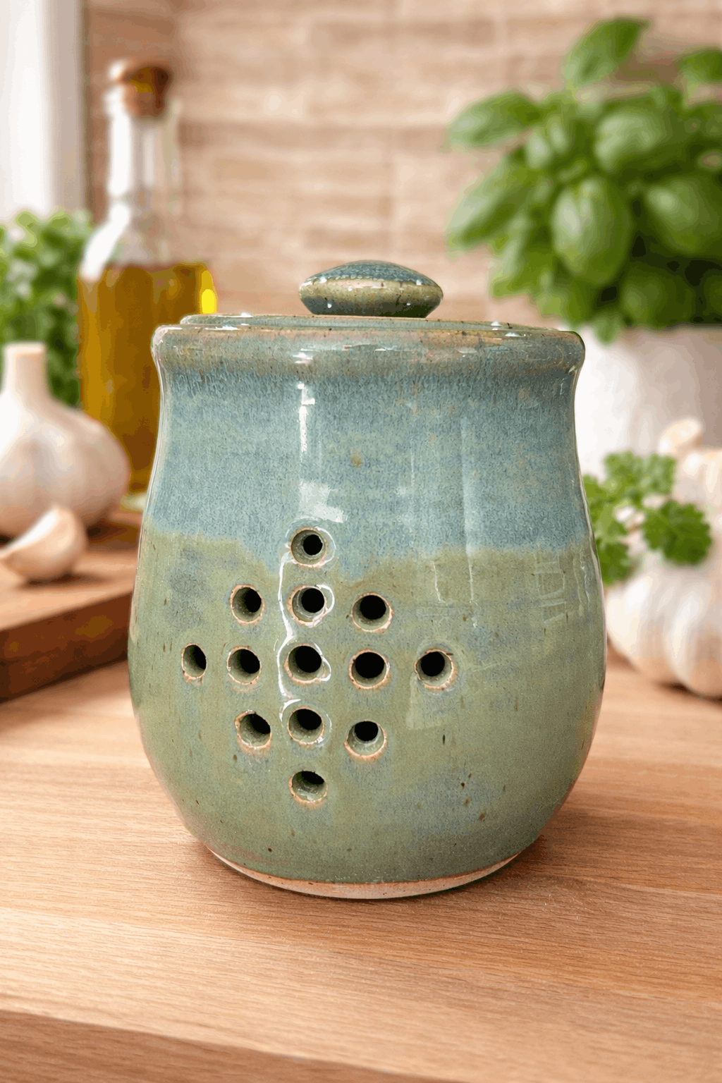 A beautiful addition to any kitchen. Perfectly vented to help keep your garlic fresh longer.
